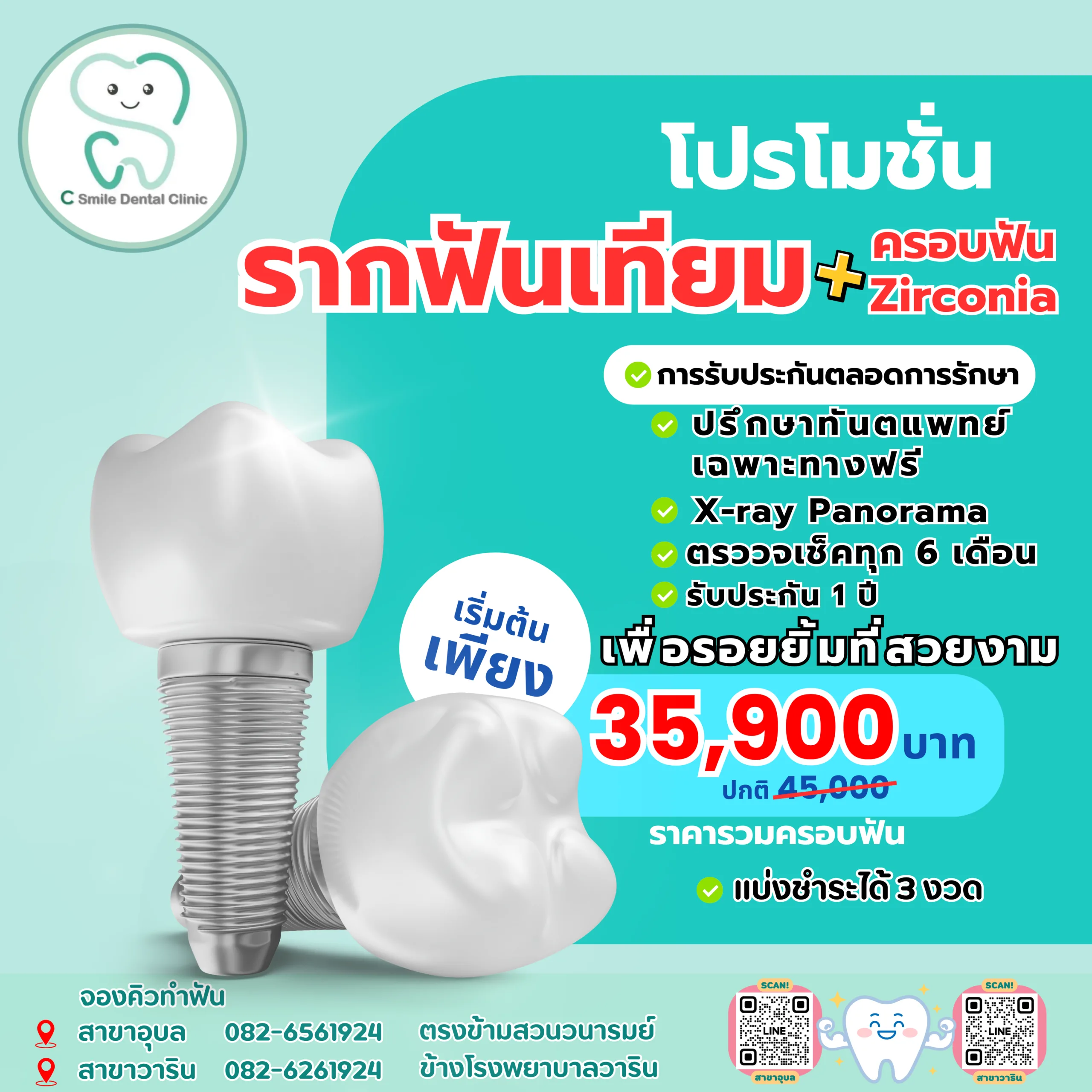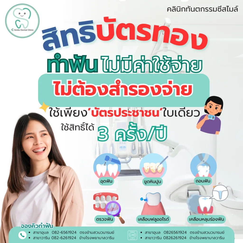 คลินิกทันตกรรมซีสไมล์ อุบล วาริน ทำฟัน จัดฟัน จัดฟันใส รักษารากฟัน ฟอกฟันขาว วีเนียร์ รากฟันเทียม ฟันปลอม ครอบฟัน อุดฟัน ถอนฟัน ขูดหินปูน ตัดแต่งเหงือก ทันตกรรมครบวงจร ในจังหวัดอุบลราชธานี ที่ใส่ใจรอยยิ้มและสุขภาพฟันของคุณ บริการด้วยมาตรฐาน ด้วยเครื่องมือและอุปกรณ์ที่ทันสมัย โดยทีมทันตแพทย์เฉพาะทาง ภายใต้ระบบรักษาความสะอาดปราศจากเชื้อด้วยเทคโนโลยีระดับสูงสุด
